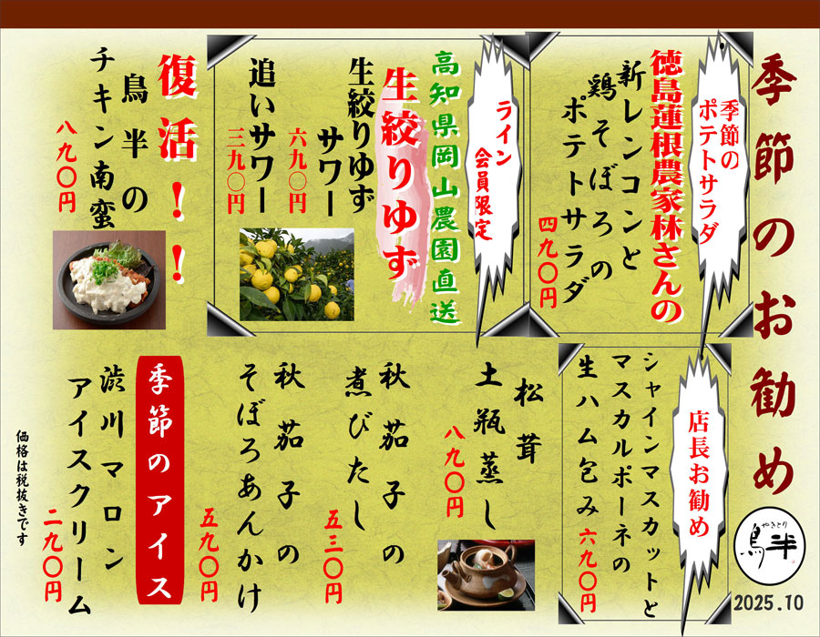 旬な食材を活かした季節のお勧めメニューが登場しました!ぜひお召し上がりください!ご来店お待ちしております!